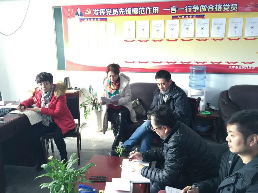 2016年12月19日,美术系直属党支部在系办公室召开党员自我剖析会。会上,美术系副书记马爱军传达学院中心组学习会议精神,根据学院要求,制定美术系党员学习计划,听取学生党员思想汇报、进行党员自我剖析、问题查找并提出整改意见。