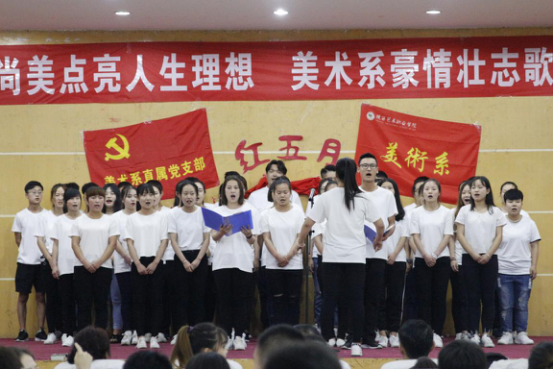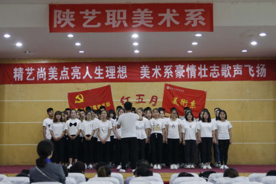 为响应学院党委“诵校训唱校歌正校风”主题实践活动,6月5日晚7点,由陕西艺术职业学院美术系主办、美术系学生会承办的“红色五月合唱大赛”在狄寨原校区1号教学楼五楼大厅。此次比赛共9个班级参加比赛,比赛要求每个班级合唱三首歌曲,一首必选歌曲《陕西艺术职业学院校歌》,两首自选红色经典歌曲。美术系副书记马爱军、行政秘书范译匀及各班班主任均参加了此次活动。 比赛中,同学们着装整齐、饱含激情、用自己高亢嘹亮的歌声歌唱祖国、颂扬祖国。《保卫黄河》、《东方有个中国》、《歌唱祖国》、《国家》《到吴起镇》《没有共产党就没有新中国》等一首首耳熟能详的红色歌曲回荡在校园的上空,充分表达了广大学生对祖国母亲的热爱。同学们声情并茂的合唱不时赢得现场观众的阵阵掌声,本次比赛不仅激发了学生的爱国热情,更进一步增强了学生的集体荣誉感和凝聚力,充分展现了美术系全体师生积极向上的精神风貌。