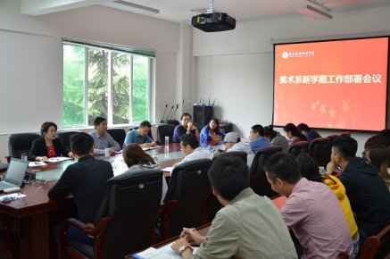 8月28日上午,美术系召开了新学期工作部署会议。会议由美术系主任时振营主持,美术系直属党支部副书记马爱军、副主任曹小劲及该系各教研室主任及部分教师参加了会议。