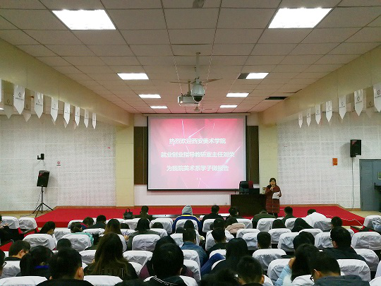 2017年11月30日,美术系邀请西安美术学院就业创业指导教研室主任刘荣,为大家做关于就业创业的讲座。15级装饰艺术设计、15级视觉传达艺术设计、15级雕塑艺术设计及部分教师参加了讲座。