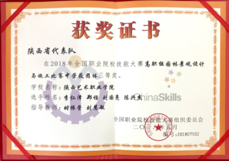 我院代表队在领导的关心和支持下,在时振营、刘慧敏、祁翔、陈进朝几位指导教师的指导下,刘国亮、郑恬、陈兴杰、李仁泽四位参赛学生经过激烈角逐,不负众望,荣获高职组园林景观设计赛项三等奖的好成绩!