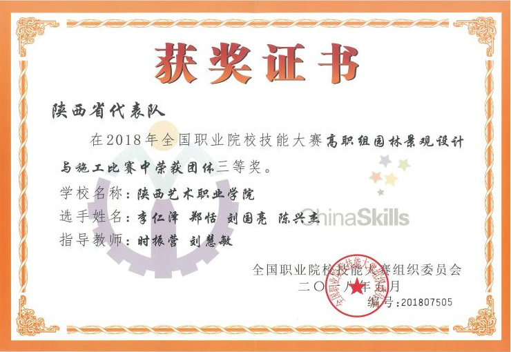 在院领导的殷切关心和大力支持下,在时振营主任、刘慧敏、祁翔、陈进朝老师的悉心指导下,我院代表队经过激烈角逐,不负众望,斩获高职组园林景观设计赛项三等奖!