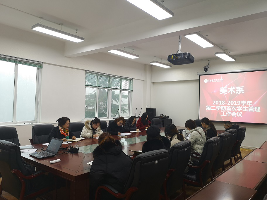 2019年3月2日上午,美术系在狄寨塬校区2楼会议室召开班主任工作会议,主要安排新学期开学准备工作事宜及传达学院会议精神。会议由美术系书记马爱军主持,行政秘书及全系辅导员、专兼职班主任参与此次会议。