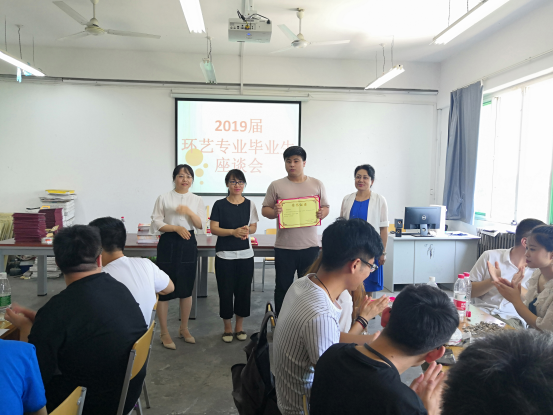 座谈会还对在校2019届美术系毕业设计作品展演活动及“艺职杯”园林景观设计与施工设计组选拔赛中表现优秀的同学进行了颁奖,为2017、2018级在校学生树立了学习榜样。