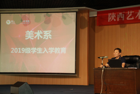 美术系直属党支部书记马爱军作新生入学教育演讲