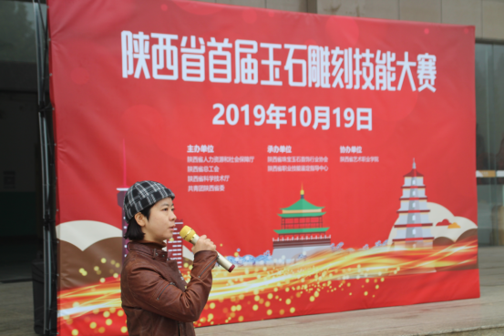 张文静代表参赛选手发言,表示此次比赛作为省级赛事给选手们提供了一次与行业更多高手交流学习的机会,在展示个人才艺的同时,对提升陕西玉石雕刻行业水平具有重要意义,选手们将尽力而为,赛出水平、赛出精彩。