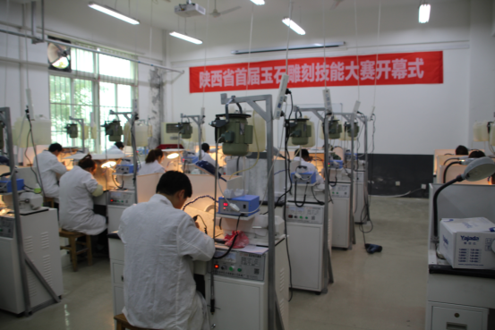 10月19日上午,由陕西省人力资源和社会保障厅、省总工会、省科学技术厅、共青团陕西省委、陕西省珠宝玉石首饰行业协会、陕西省职业技能鉴定指导中心、陕西艺术职业学院举办的“陕西省首届宝玉石职业技能大赛玉石雕刻竞赛”在我院狄寨校区开赛。