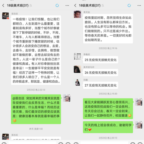 立德树人,使命如磐。在疫情防控的特殊时期,美术系坚持将学生思想政治教育工作融入疫情防控当中,采取多种形式对学生进行爱国主义教育、社会责任教育、生命教育,构筑起了一道坚实的“防疫墙”。