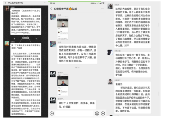 打好心理防疫战。疫情期间,美术系除了实施学生健康情况“日报告”和“零报告”,还依托“解忧画室”心理咨询站分别组织全系辅导员和全体学生进行线上学习,针对学生在疫情防控过程中容易出现的心理问题进行指导培训,引导学生保持乐观的心态,坚定必胜的信念。