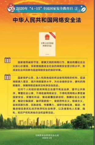 2020年4月15日是我国第5个“全民国家安全教育日”。梁瑾向学生普及了保护国家安全的相关内容,提高全民国家安全法治意识,营造维护国家安全的浓厚法治氛围,增强防范和抵御安全风险能力,是每一个公民应尽的责任及义务。国家安全,与我有关,“国泰”方能“民安”,在维护国家安全上人人都不是局外人、旁观者,而是人人有责,更需人人尽责。梁瑾强调,作为当代中学生,同学们要诚实守信,开展健康文明的网络行为,提高网络安全水平和意识。