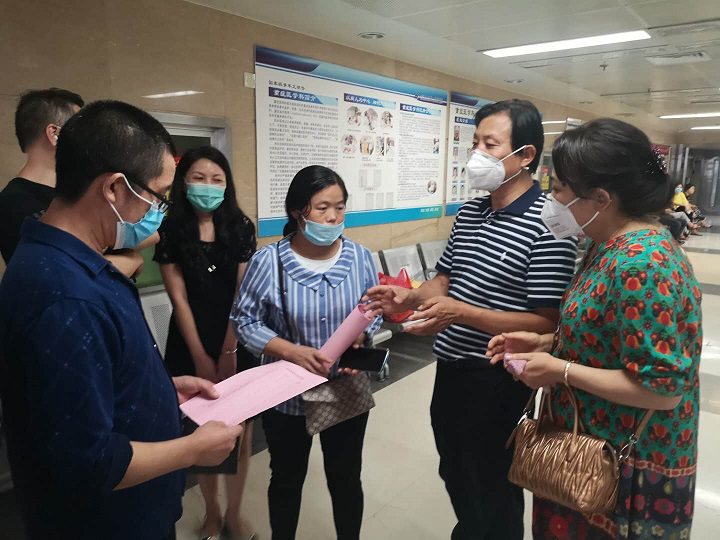 2020年7月3日下午,美术系主任时振营、直属党支部书记马爱军、副主任曹小劲及部分教师前往西安交大一附院看望赵彪同学。因赵彪同学病情危重仍在ICU病房治疗未能见到其本人。在病房外我们见到了赵彪的父母,时振营详细地询问了目前的治疗和家庭困难等情况,表示美术系将会继续关注;马爱军叮嘱家长细心照顾孩子的同时也要照顾好自己的身体,以积极的心态去面对问题。最后,系领导鼓励赵彪父母好好配合医院治疗,并代表美术系送上爱心善款,赵彪父母表示恳请领导们帮助转达他们全家对美术系所有师生的谢意,他们定会把这份爱心永远铭记于心。