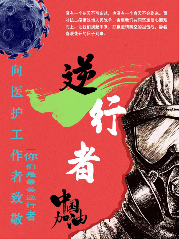 新型冠状病毒感染的肺炎疫情在武汉爆发了,在这病毒肆虐的惴惴不安里,是他们冲到了第一线,用自己的生命,为世界人民筑起了一道道防线,拯救了一个个被病毒侵袭的患者。他们是抗疫病毒的逆行者,是他们用执着和坚守诠释着爱的奉献和大医精神,期待着他们早日归来阖家团圆。