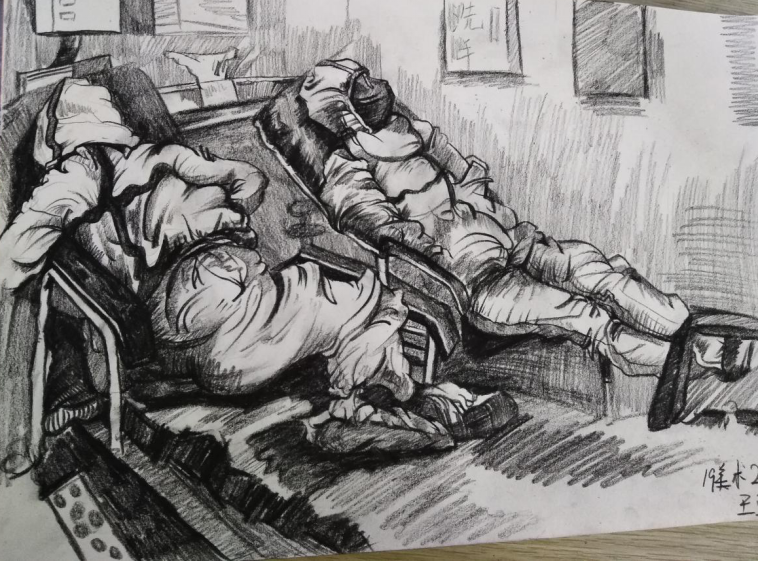 本幅作品是用速写构成的还运用了彩铅该内容表达了国家以及中华民族对疫情的抗争决心从内容上直观表现出白衣天使的责任以及使命,表现出他们对疫情的抗争到底的决心,在危急时刻,义无反顾地“顶上去”,是他们,面对肆虐的疫情,始终坚守在自己岗位上,用单薄的身躯筑起疫情防控的铜墙铁壁。