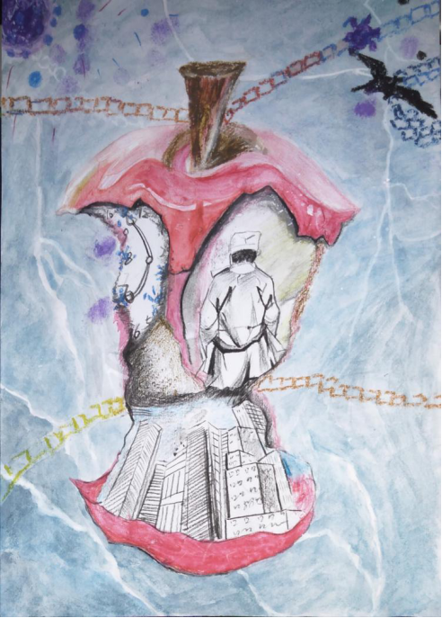 疫情就是命令,防控就是责任。灵感也由此而发,苹果,希望每个人都平安的度过这次疫情,其次它本身苹果核的中间,钟表,在疫情面前我们只能与时间赛跑,医生是他们替我们负重前行,楼房,体现出自己内心所希望的美好的家园,背景一些病毒,体现出病毒正在被我们消灭,它的数量也由此会减少,蝙蝠被锁链锁住,可以让我们意识到不杀生,但愿我们的生活早日可以回到正轨。