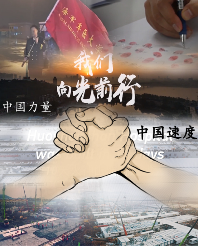 图中左侧的图队长坚定的眼神正是中国人的勇敢和对疫情的不屈,而右侧是其他省会的医疗队在驰援武汉前对疫情下的战书,他们纷纷在纸上扣字画押,表明自己坚定的信念,体现出“中国力量”。下方的图则两张武汉火神山医院一方面体现出的“中国速度”,另一方面显示出了社会主义的优越性。最后的中间的图太阳缓缓升起,意味着希望的到来,以象征着武汉的恢复。整体体现了中国的大国形象和实力。
