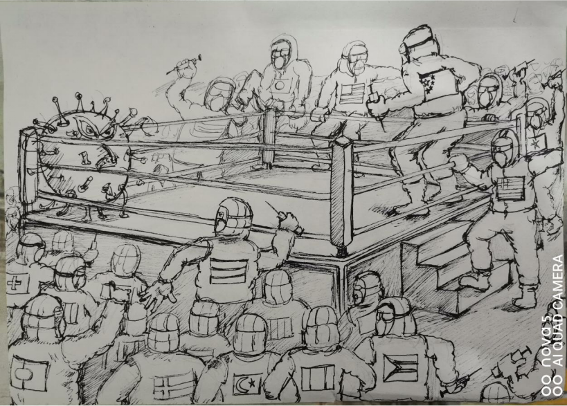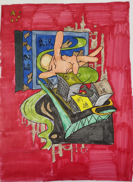 2020年春节是一个特殊的春节,一场突如其来、态势凶猛的新型冠状病毒肺炎疫情阴影,笼罩荆楚大地,蔓延波及全国。新型冠状病毒来势汹汹,全国人民众志成城,投入到这场没有硝烟的战争中。新冠肺炎疫情的发展和同胞的安危,牵动着全国人民的心。由于疫情严峻,许多工作人员一直坚守岗位,整个春节放弃与家人的团聚,投入抗疫防疫工作中。有一种誓言叫“我先上”,在这次疫情防控阻击战中,“我先上”这句话一次次传来。它包含着冲锋在前的勇气,也体现出面对困难当仁不让的担当,给群众带来了坚定的信心。这些喊出“我先上”的人,有一个共同身份:共产党员。为铭记抗疫历程,感悟抗疫情感,激发同学们的爱国情怀,明确未来的责任与担当,陕西艺术职业学院美术系直属党支部向您展示新鲜血液学生入党积极分子画笔下的抗疫力量,传递抗疫精神!
