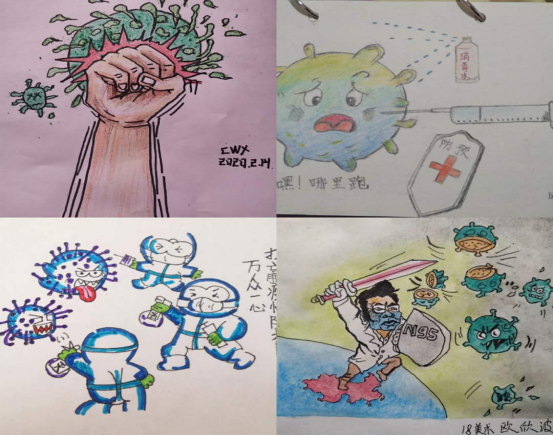 新年伊始,新冠肺炎病毒肆虐,疫情的发展牵动着美术系全体师生的心。美术系党政领导高度重视,积极响应学院号召安排美术系师生防疫工作,坚持师生每日健康报告,根据学院安排坚持APP打卡学习《新型冠状病毒病毒防疫安全公益课》和“防疫健康教育”平台学习。结合学习内容,美术系师生立足专业特色,创作了多幅优秀美术作品,为武汉加油,向奋战在抗疫一线的医护人员致敬,同时以通俗易懂、诙谐幽默的漫画、表情包形式,向大家普及新冠肺炎病毒及疫情防控知识,助力武汉早日打赢疫情防控阻击战。