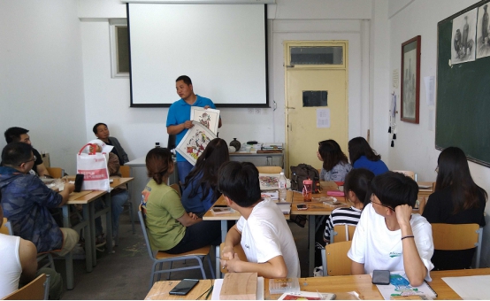 本次授课是美术系加强《高职教学中非遗美术传承的工作坊制研究》项目建设的内容之一。该项目由美术系副主任曹小劲申请立项,旨在研究如何在非遗民间美术教学中引入工作坊教学模式,并对其特点及优势进行分析,继而解决基于系统学科教学体系下如何进行民间文化传承创新;结合学生实际情况及民间美术特性,探索“主体性”工作坊教学模式的组织与实施等问题。